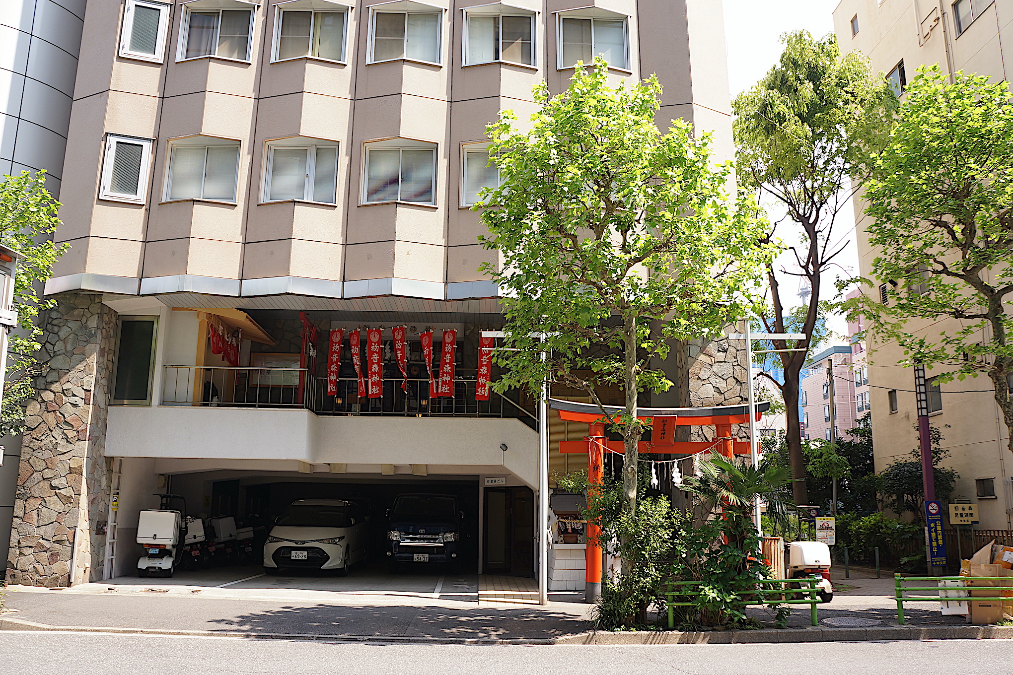 戦後の昭和23年(1948)、再び、初音森神社旧蹟の地に社殿が建立され、昭和48(1973)には、現在のようなビルになったようです。